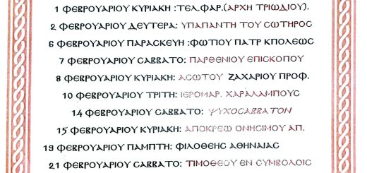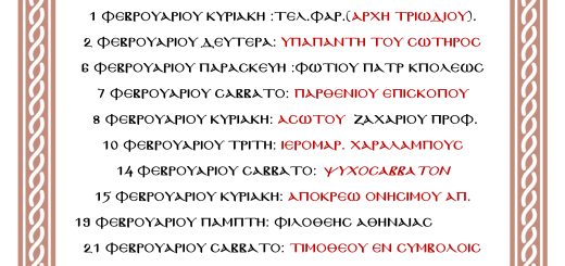 ΩΡΑΡΙΟ ΝΑΟΥ ΦΕΒΡΟΥΑΡΙΟΥ
