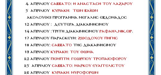 ΩΡΑΡΙΟ ΝΑΟΥ ΑΠΡΙΛΙΟΥ