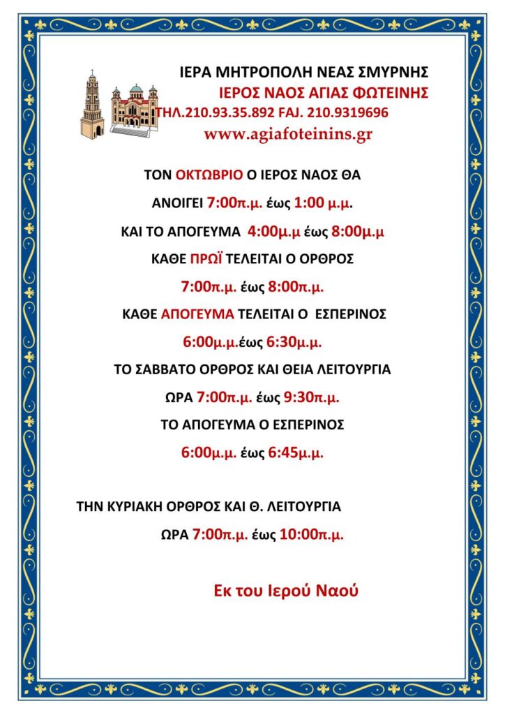 ΩΡΑΡΙΟ ΝΑΟΥ ΣΕΠΤΕΜΒΡΙΟΥ 31 Αυγούστου 2022 συντάκτης ΣΑΒΒΑΣ ΠΑΠΑΔΟΠΟΥΛΟΣ · Published 31 Αυγούστου 2022 · Last modified 4 Φεβρουαρίου 2023
