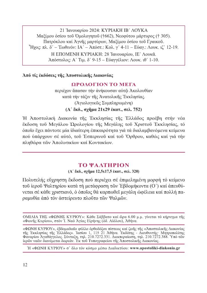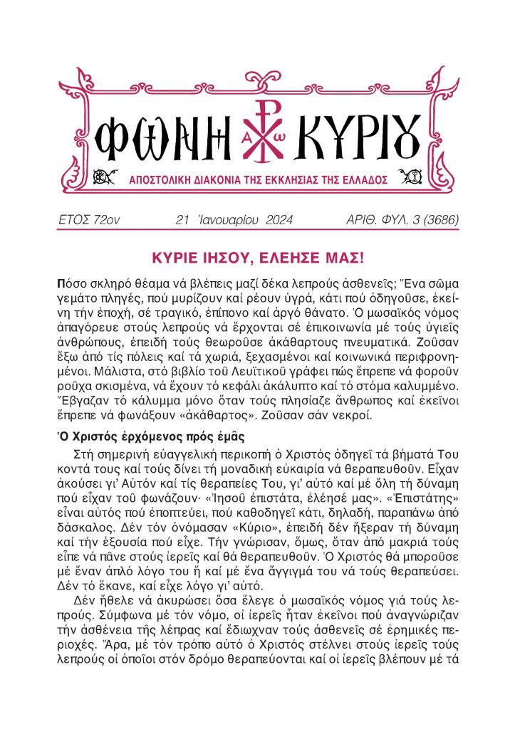 ΦΩΝΗ ΚΥΡΙΟΥ 21-1-2024