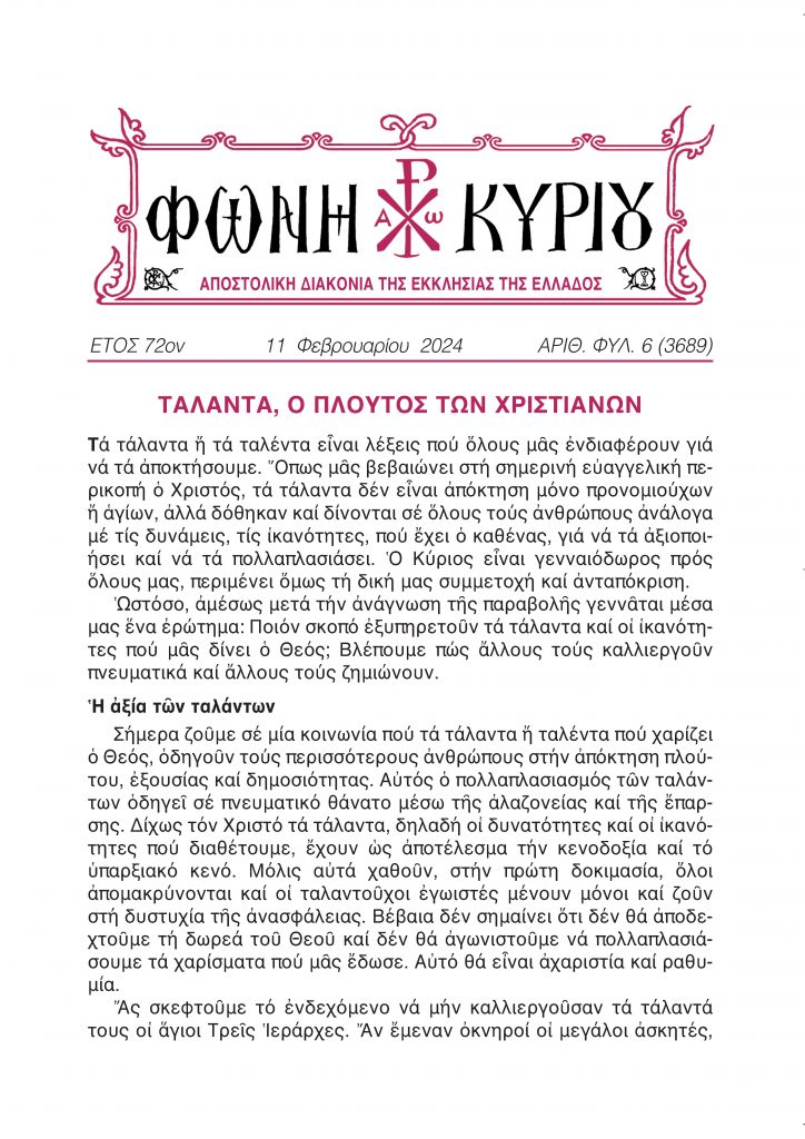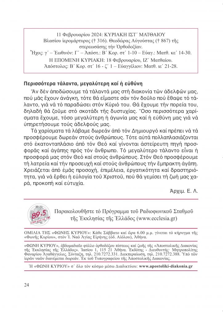 ΦΩΝΗ ΚΥΡΙΟΥ 11-2-2024