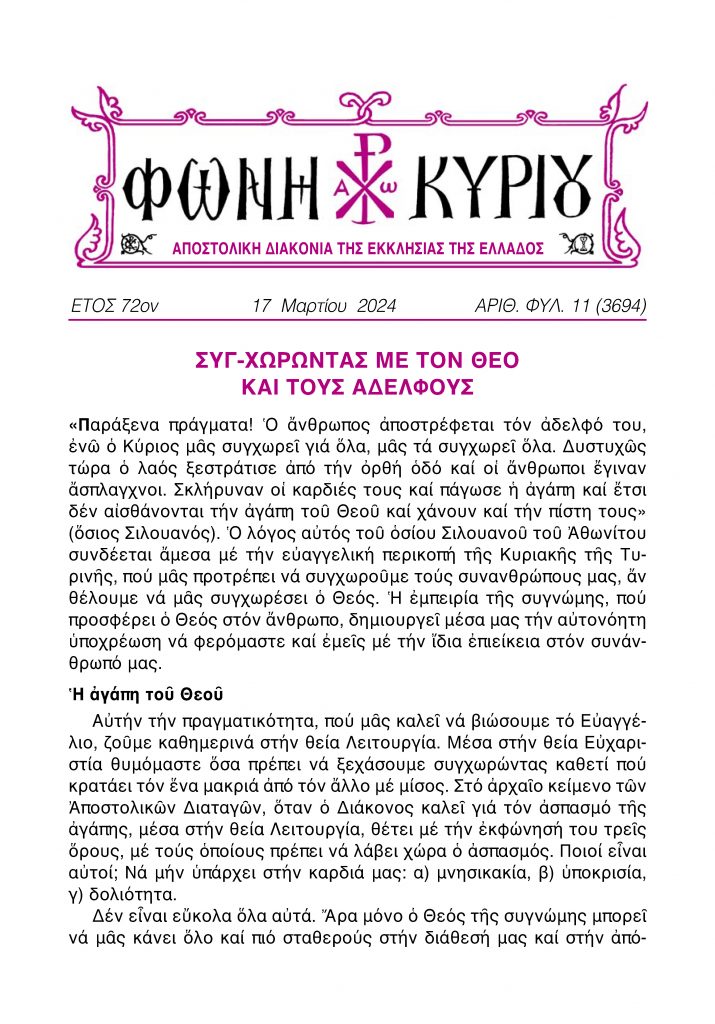 ΑΓΙΑ ΓΡΑΦΗΙΕΡΟΣ ΣΥΝΑΞΑΡΙΣΤΗΣΣΗΜΕΡΑ ΕΟΡΤΑΖΟΥΝΦΩΝΗ ΚΥΡΙΟΥ