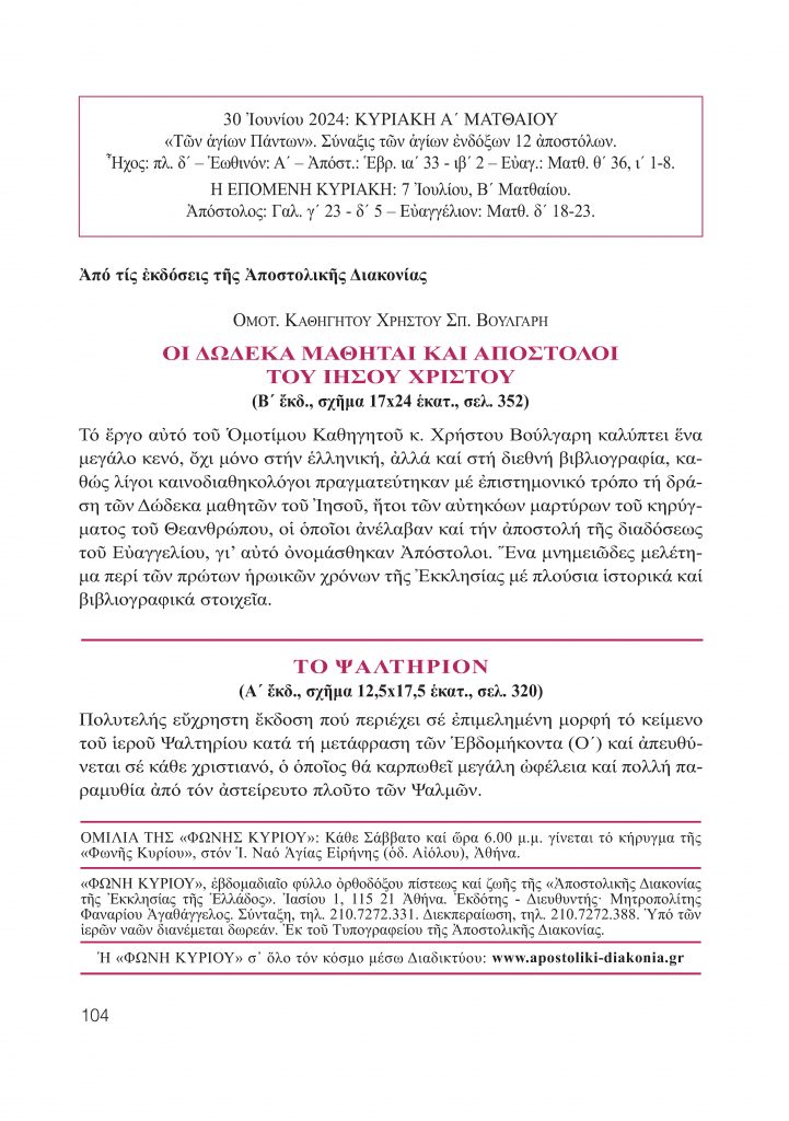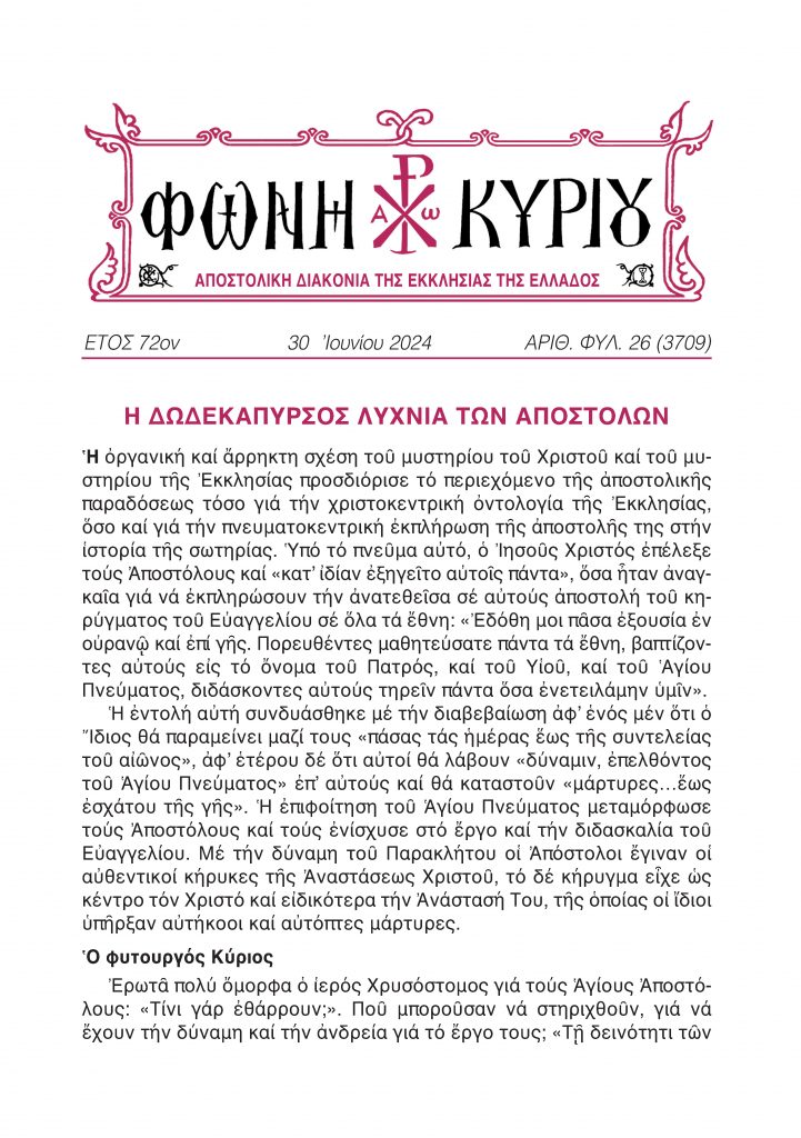 ΦΩΝΗ ΚΥΡΙΟΥ 30-6-2024