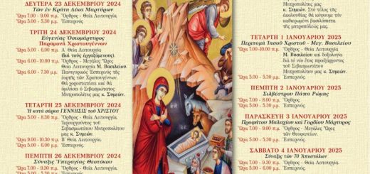 Ὡράριο στό ὁποῖο παραμένει ἀνοιχτός ο Ἱερός Ναός Ὁ Ἱερός Ναός, γιά τό μήνα ΟΚΤΩΒΡΙΟ θα είναι ἀνοικτός τίς ἑξῆς ὧρες: Πρωϊ: 07:00 – 1:00 μ. μ. Απόγευμα: 4:00 – 8:00 μ.μ