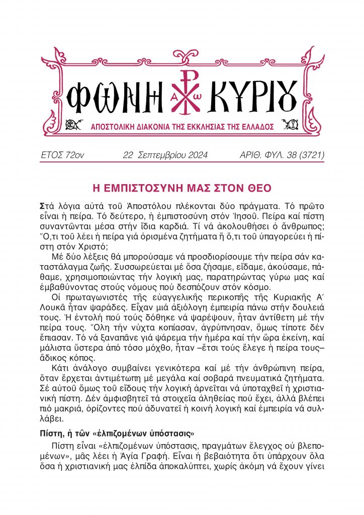ΦΩΝΗ ΚΥΡΙΟΥ 21-1-2024 22 Ιανουαρίου 2024 συντάκτης ΑΝΑΣΤΑΣΙΟΣ ΣΤΑΜΑΤΙΟΥ · Published 22 Ιανουαρίου 2024