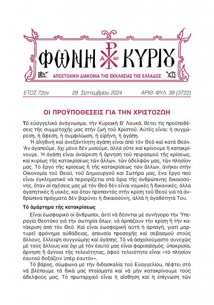ΦΩΝΗ ΚΥΡΙΟΥ 22-12-2024 20 Δεκεμβρίου 2024 συντάκτης ΑΝΑΣΤΑΣΙΟΣ ΣΤΑΜΑΤΙΟΥ · Published 20 Δεκεμβρίου 2024