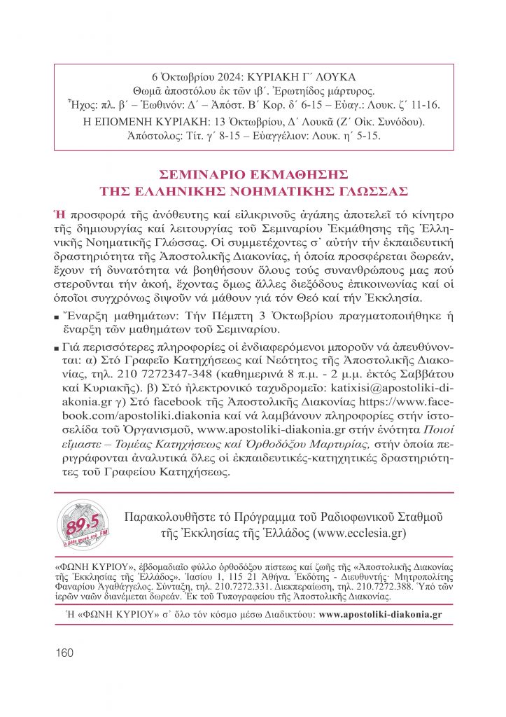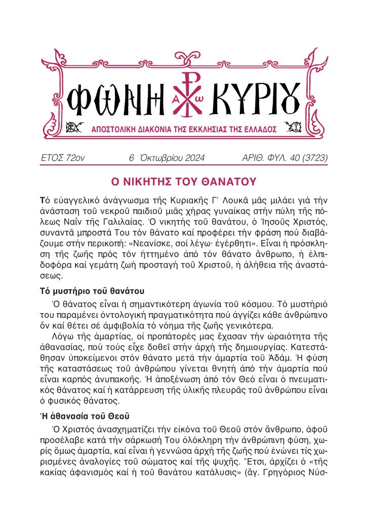 ΦΩΝΗ ΚΥΡΙΟΥ 20-10-2024 17 Οκτωβρίου 2024 συντάκτης ΑΝΑΣΤΑΣΙΟΣ ΣΤΑΜΑΤΙΟΥ · Published 17 Οκτωβρίου 2024