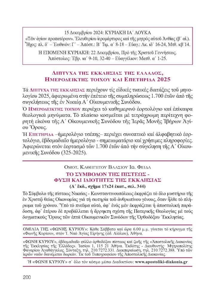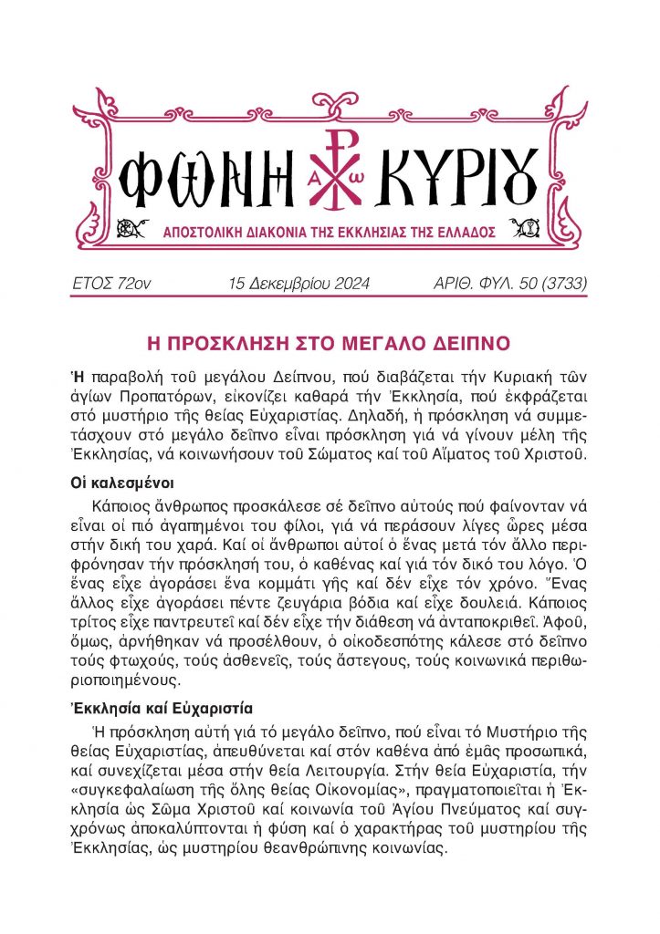 ΦΩΝΗ ΚΥΡΙΟΥ 15-12-2024