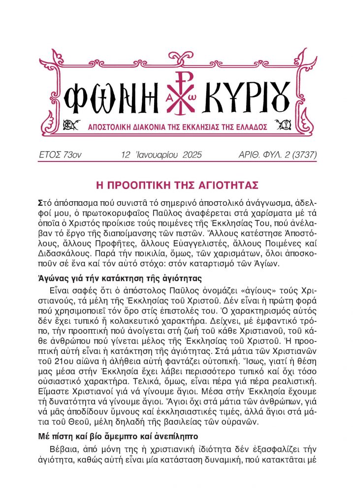 ΦΩΝΗ ΚΥΡΙΟΥ 19-1-2025 22 Ιανουαρίου 2025 συντάκτης ΑΝΑΣΤΑΣΙΟΣ ΣΤΑΜΑΤΙΟΥ · Published 22 Ιανουαρίου 2025