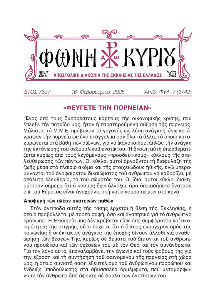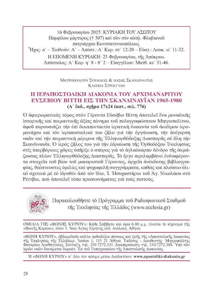 ΦΩΝΗ ΚΥΡΙΟΥ 16-2-2025