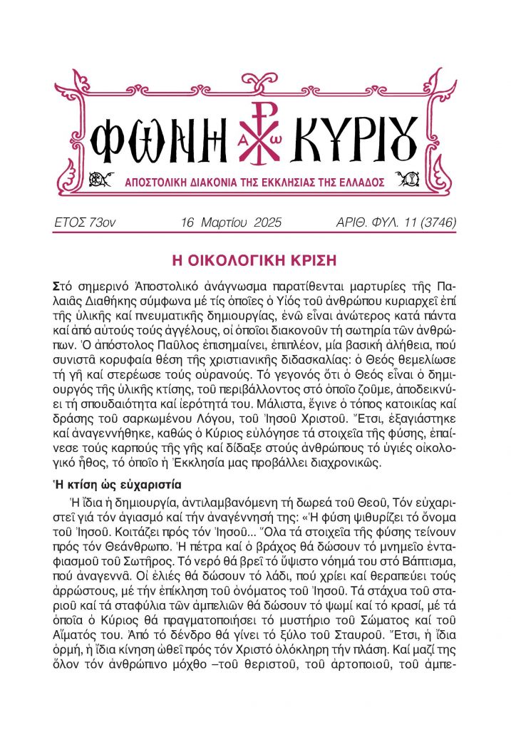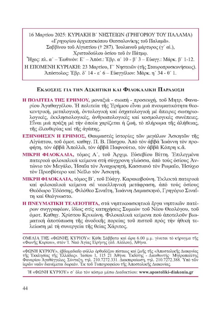 ΦΩΝΗ ΚΥΡΙΟΥ 16-3-2025