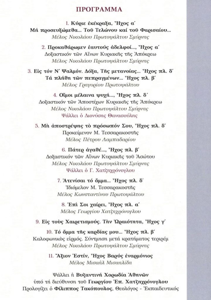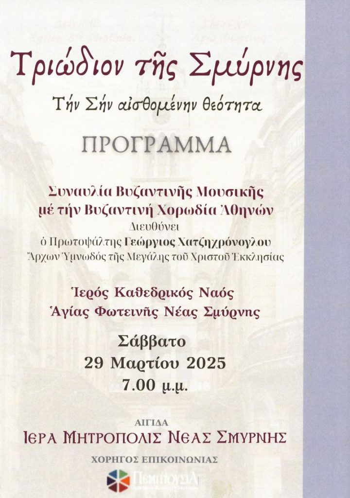 Συναυλία Βυζαντινῆς Μουσικῆς ὑπό τόν τίτλο: Τριώδιο τῆς Σμύρνης «Τήν Σήν αἰσθομένην Θεότητα»,
