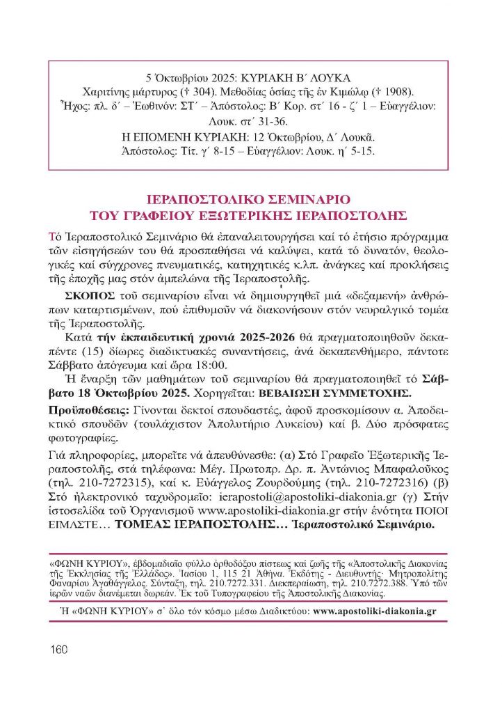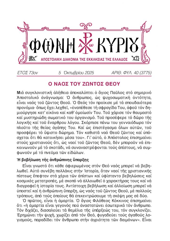 ΦΩΝΗ ΚΥΡΙΟΥ 5-10-2025
