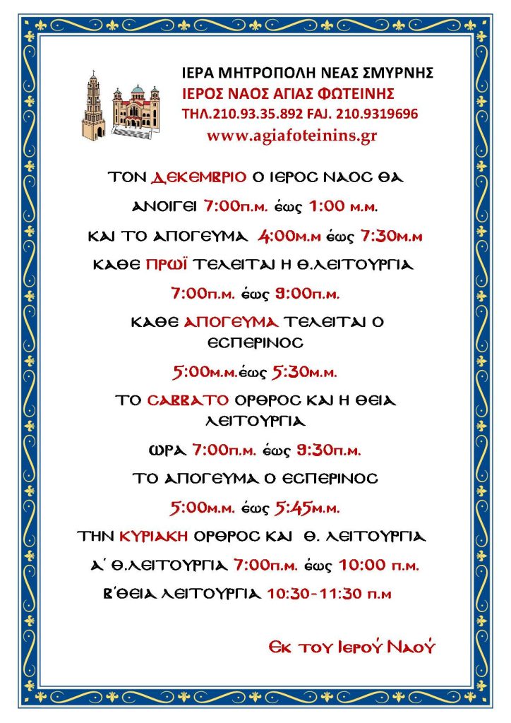 ΘΕΙΕΣ ΛΕΙΤΟΥΡΓΙΕΣ ΔΕΚΕΜΒΡΙΟΥ 1 Δεκεμβρίου 2025 συντάκτης ΑΝΑΣΤΑΣΙΟΣ ΣΤΑΜΑΤΙΟΥ · Published 1 Δεκεμβρίου 2025