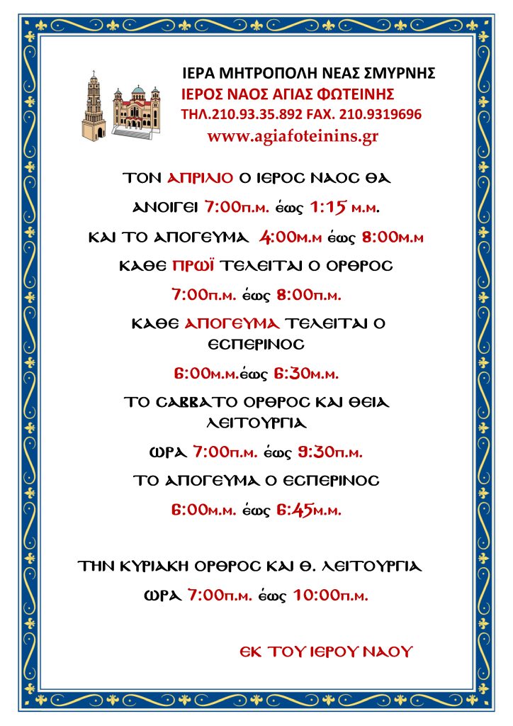 ΘΕΙΕΣ ΛΕΙΤΟΥΡΓΙΕΣ ΑΠΡΙΛΙΟΥ 31 Μαρτίου 2026 συντάκτης ΑΝΑΣΤΑΣΙΟΣ ΣΤΑΜΑΤΙΟΥ · Published 31 Μαρτίου 2026