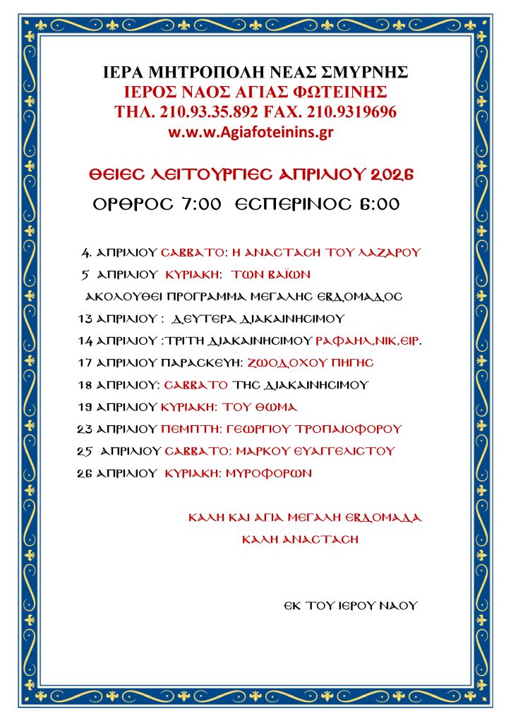 ΘΕΙΕΣ ΛΕΙΤΟΥΡΓΙΕΣ ΑΠΡΙΛΙΟΥ