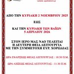 - ΚΥΡΙΑΚΗ 12 ΟΚΤΩΒΡΙΟΥ 2025 ΣΤΟΝ ΚΑΘΕΔΡΙΚΟ ΝΑΟ ΜΑΣ